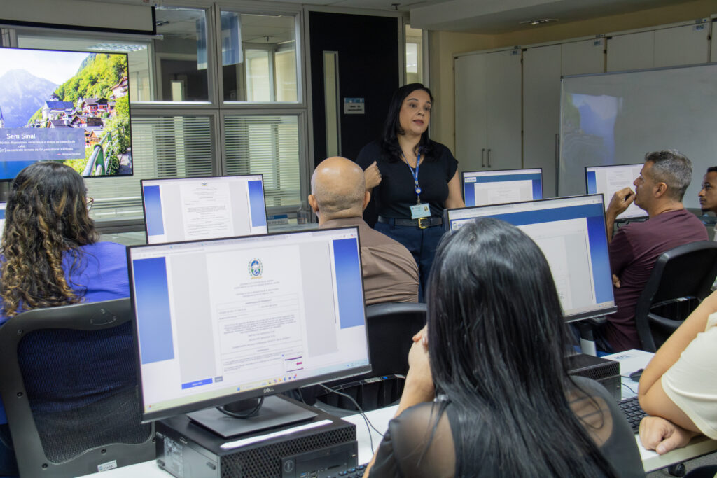 Com base nos conceitos de Atendimento Humanizado, a instrutora abordou a navegação estruturada no site, enfatizando o uso da Central de Serviços e do Sistema Eletrônico de Informações (SEI), dentre outros sistemas. As orientações tiveram como foco a resolução de demandas frequentes, a redução de problemas no atendimento presencial e a promoção do acesso aos serviços públicos digitais.