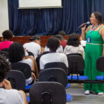 As apresentações da manhã começaram com a assistente Renata Barreto, da Seeduc, que apresentou aos alunos um panorama sobre a transversalidade da temática no contexto da Educação. Já a assistente Joanna Carvalho, da Divisão de Educação Fiscal da Efaz, deu continuidade ao debate falando sobre a importância da participação do cidadão no monitoramento da alocação dos recursos públicos.