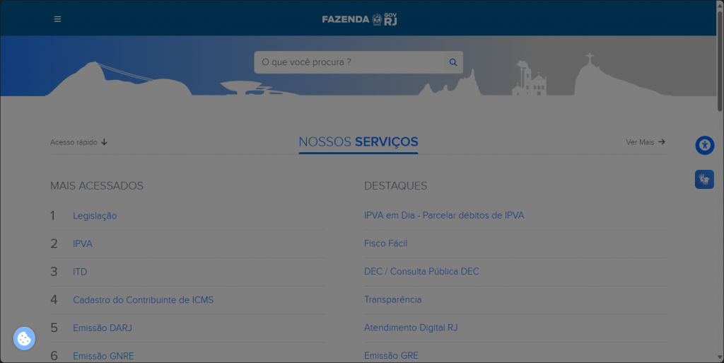 Os cookies são muito importantes para viabilizar o funcionamento das nossas páginas e a prestação de serviços por meio digital. Aqui na SEFAZ-RJ, utilizamos cookies essenciais para o funcionamento dos nossos sites e alguns analíticos, que nos ajudam a medir o desempenho das nossas páginas, para que possamos, continuamente, melhorar a experiência dos nossos usuários.