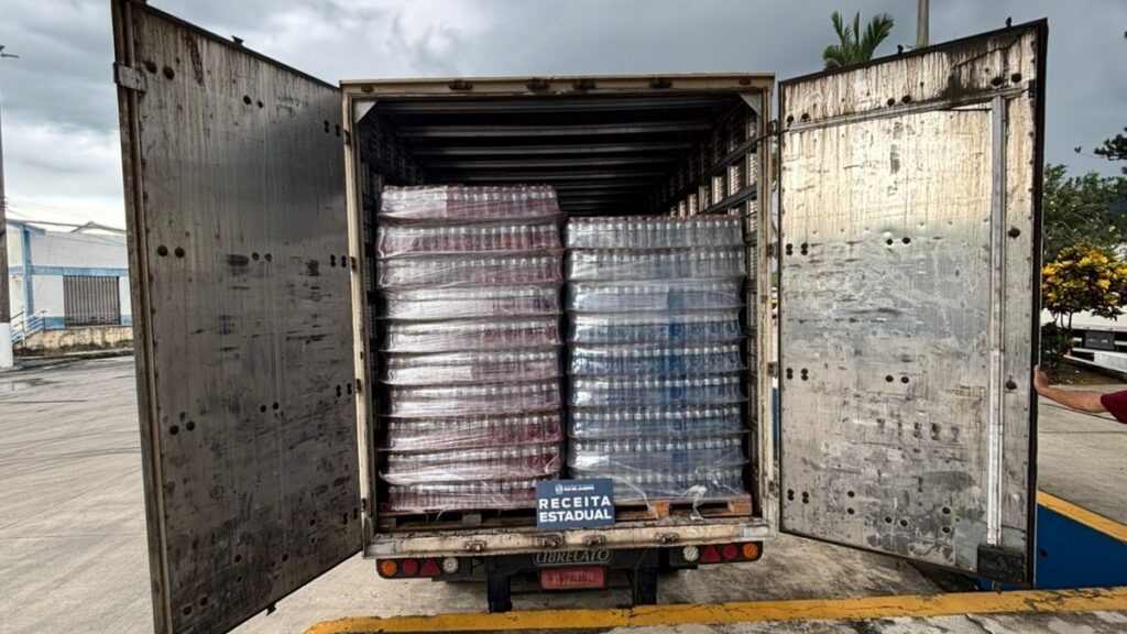 Carga com mais de 125 mil latas de cerveja e garrafas de isotônico é apreendida