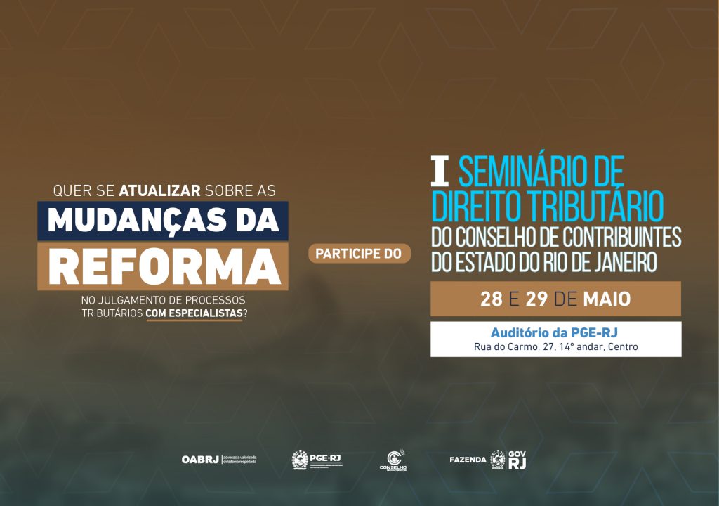O Conselho de Contribuintes do Estado do Rio de Janeiro vai promover, nos dias 28 e 29 deste mês, o seu primeiro seminário de Direito Tributário. Com sede no auditório da Procuradoria Geral do Estado, o evento vai abordar, em nove painéis, as mudanças que a Reforma Tributária vai trazer para a área. A realização é uma parceria entre a Sefaz-RJ, a Procuradoria Geral do Estado e a Ordem dos Advogados do Brasil (OAB).
