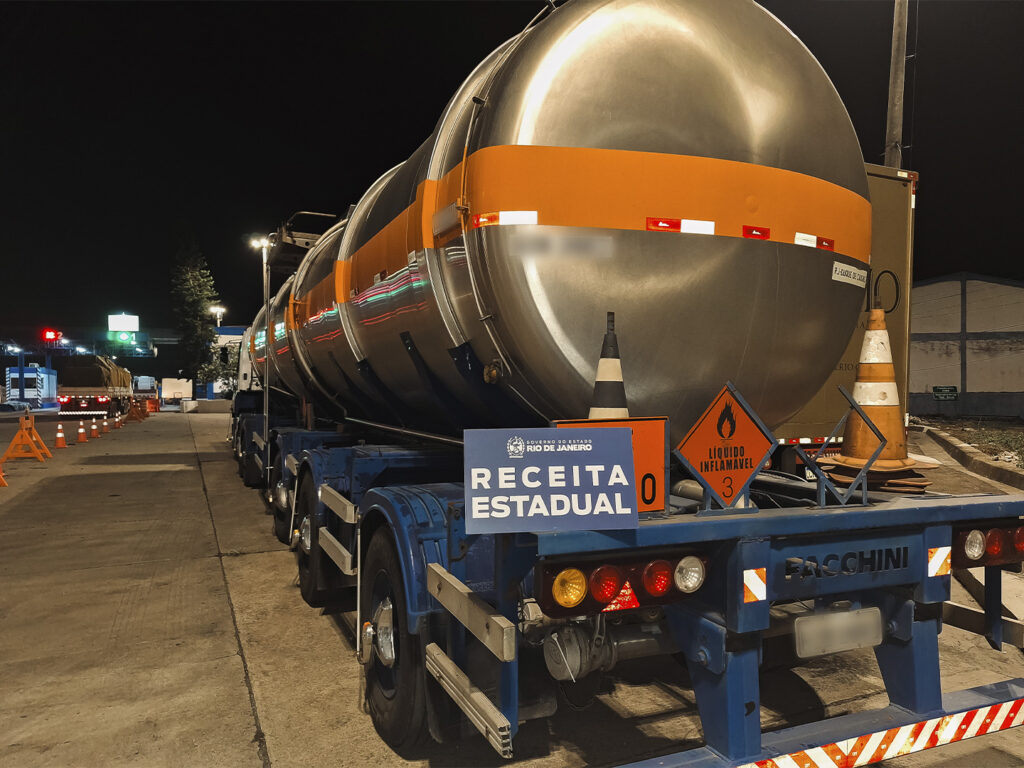 Auditores Fiscais da Receita Estadual apreenderam, nesta quinta-feira (26/09), 45 mil litros de etanol transportados por um caminhão que passou pelo Posto de Controle Fiscal de Nhangapi, na divisa entre Rio e São Paulo. O veículo foi parado dentro da ação especial lançada este mês pela Secretaria de Estado de Fazenda, que destinou guichês específicos para a fiscalizações de caminhões com carga de combustíveis. O objetivo é intensificar o combate à sonegação de impostos no setor.