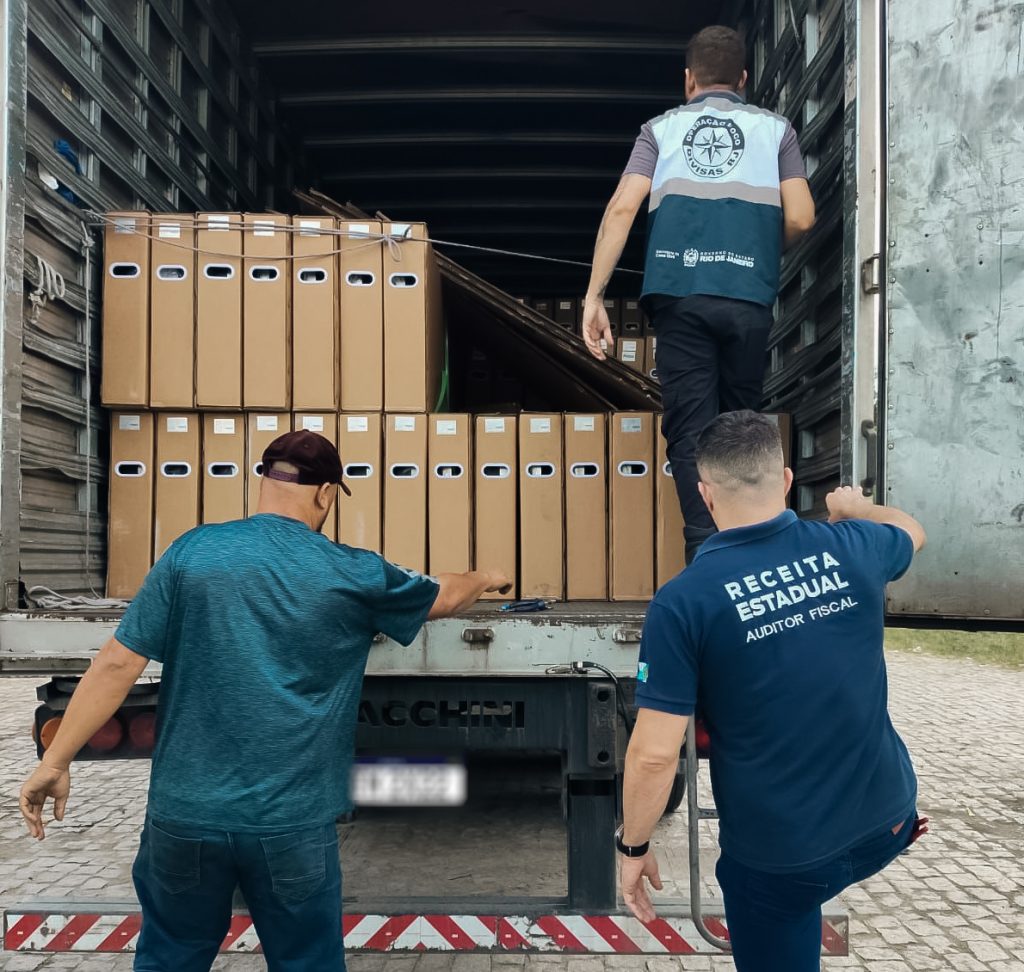 Em mais uma ação conjunta, Auditores Fiscais da Receita Estadual e agentes da Operação Foco apreenderam, nesta segunda-feira (09/06), 346 monitores de Led em Itaperuna, Noroeste Fluminense, na região do antigo Posto de Controle Fiscal de Timbó.
