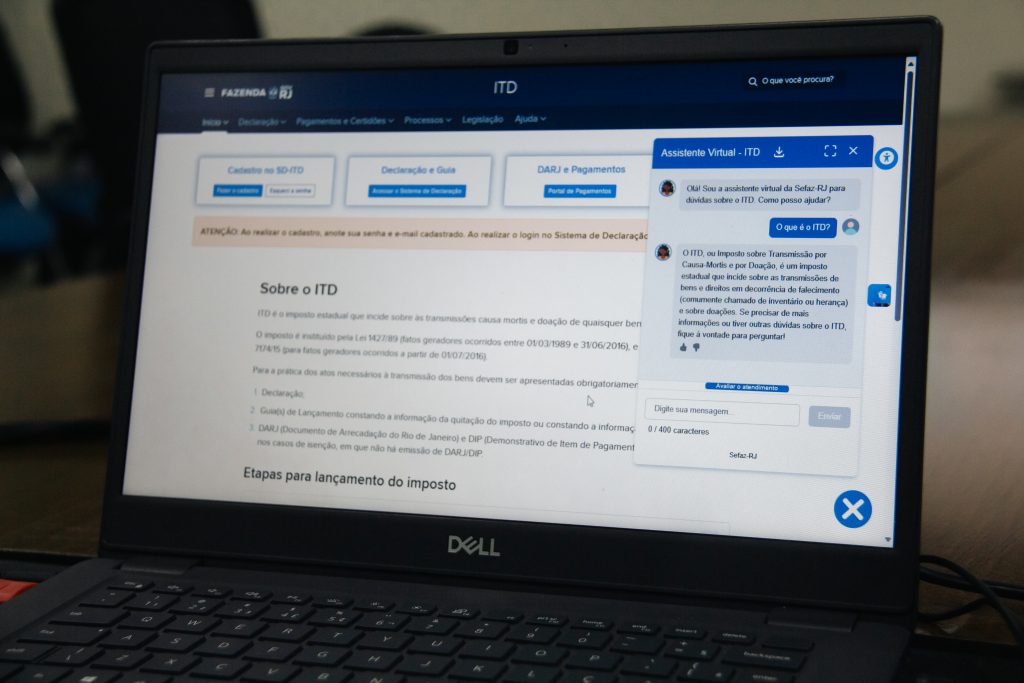 A Secretaria de Fazenda (Sefaz-RJ) disponibilizou um assistente virtual dedicado ao Imposto sobre Transmissão Causa Mortis e Doação (ITD) no Portal do tributo para responder às perguntas frequentes dos contribuintes do tributo. A ferramenta, que utiliza inteligência artificial (IA) generativa, realizou cerca 1.200 atendimentos com tempo médio de resposta em torno de 4.5 segundos em pouco mais de 4 meses.