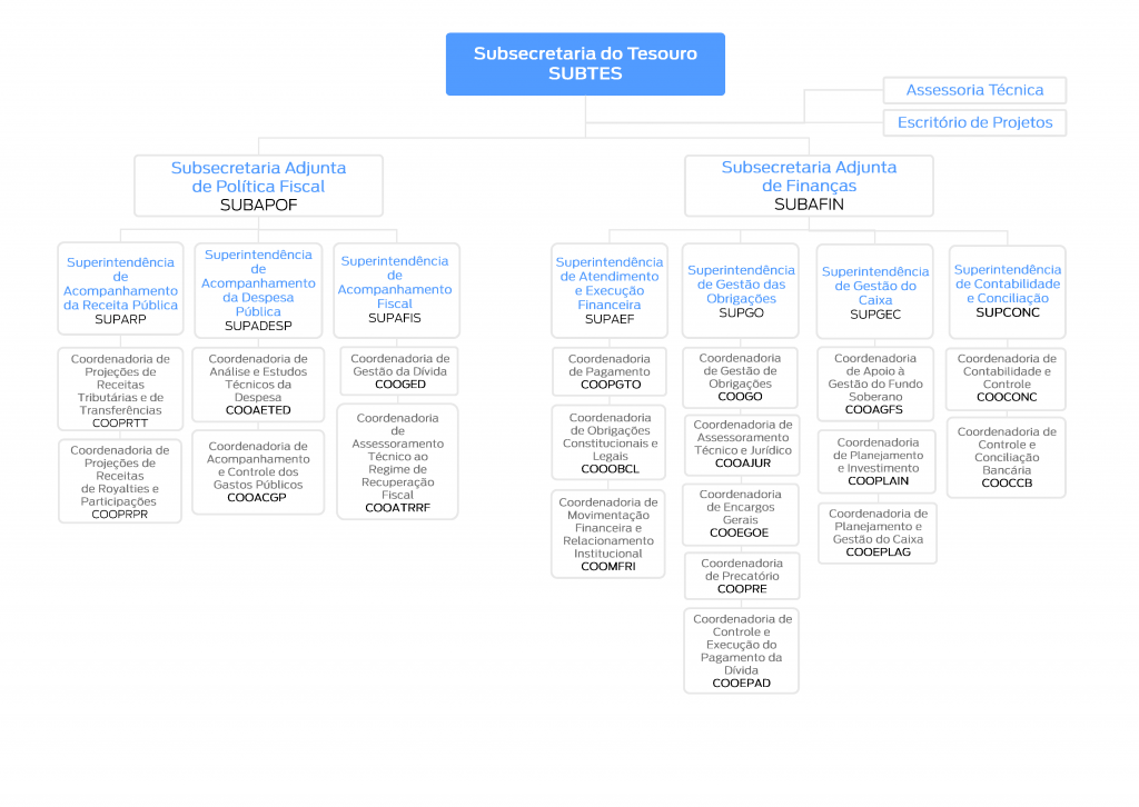 Inserida como unidade administrativa na Secretaria de Estado de Fazenda do Rio de Janeiro, a Subsecretaria do Tesouro (SUBTES) foi instituída por meio do Decreto n.º 40.613, de 15 de fevereiro de 2007. Recentemente, sua estrutura organizacional foi alterada por meio do Decreto Estadual n.º 48.893, de 11 de janeiro de 2024.